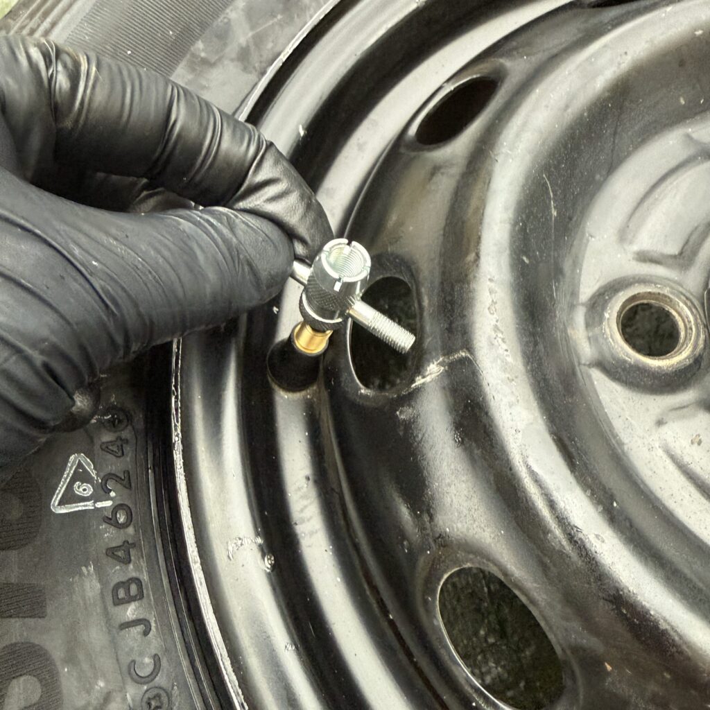 最初にタイヤレバー6点セット付属のムシ回しで、タイヤバルブのムシを外します。